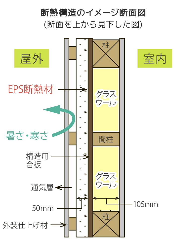 - 災害時停電したとしても3日間程度、室内温度が15℃以上で安定